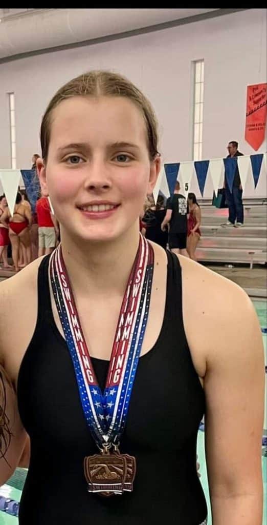 “My favorite part about being on the swim team is the people who are in it,” she says. “The girls are always so fun to be around. They’re always positive at practice and trying to get better. All of them are so kind and fun to talk to and learn about. I’m so glad I’m able to be a part of the swim team and get to know all of the girls!”